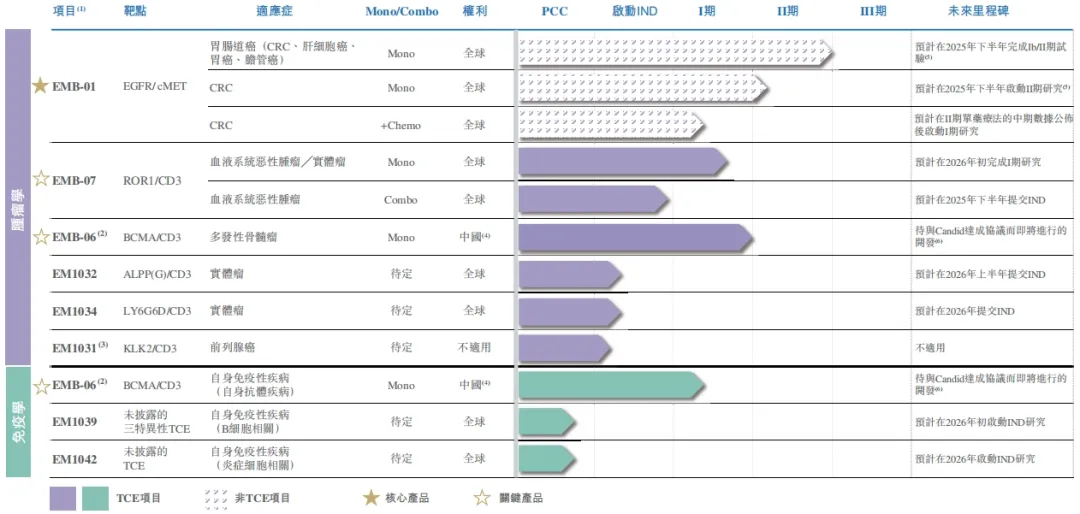 其中,EMB-01有望成为全球率先上市的结直肠癌靶向EGFR/cMET双特异性抗体之一。
