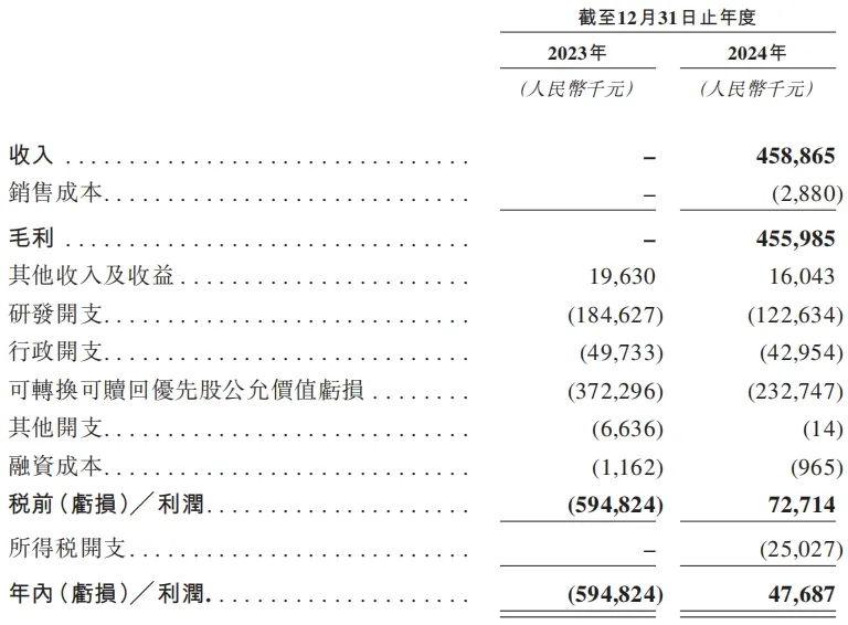 财务方面,岸迈生物的收入来自对外授权及合作协议,包括与(i)根据相关许可协议支付的预付款,及(ii)向Candid提供的研究服务有关的收入。据招股书,2023年岸迈生物年内亏损约5.9亿元,2024年,其实现收入约4.59亿元,年内净利润约为0.48亿元。