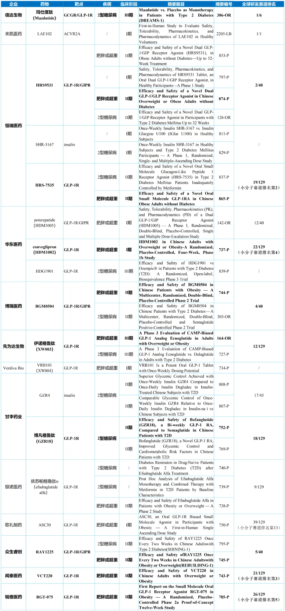 参加ADA 2025的中国企业临床研究成果