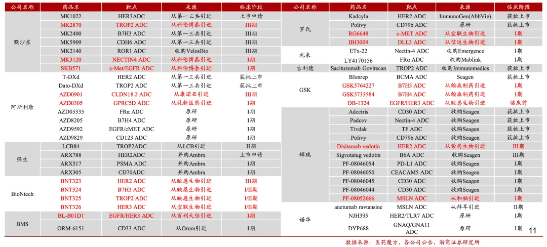 从重点领域的角度,二代IO/ADC仍有窗口期。MNC均有不错的一代IO管线布局,但是二代IO布局仍未有显著突破,有趣的是,MNC管线中“未来潜力品种”不知不觉以中国本土创新药(二代IO/ADC)作为重要管线。在二代IO+ADC的新时代,以下3个表格中也许还会诞生超级BD。