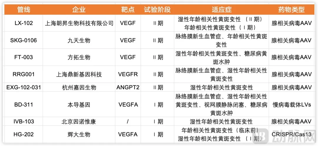国内AMD适应症进入临床阶段的基因治疗管线,数据源自摩熵医药