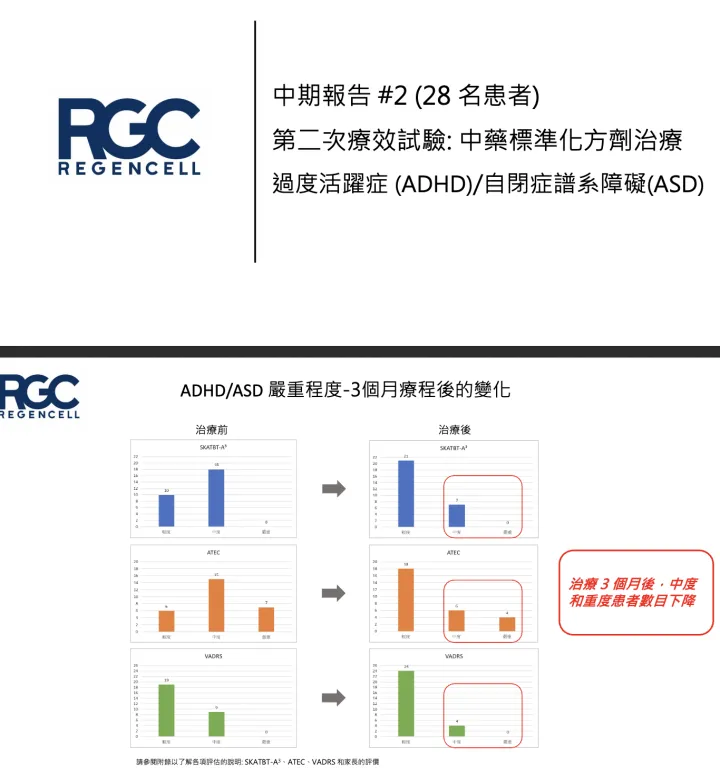 公司并未公布其临床情况,仅在2023年于官网公布的一项中期报告,用于评估其标准化中药配方对于治疗ADHD和ASD)有效性的临床试验: