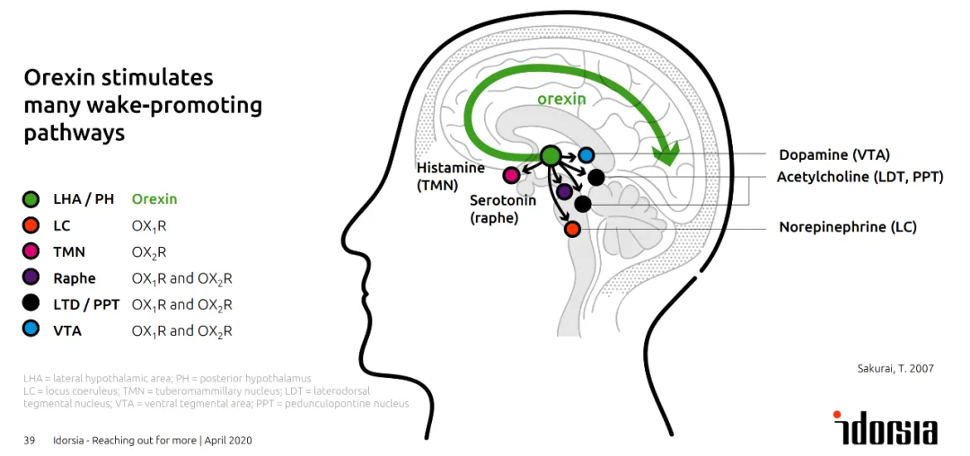 达利雷生是Idorsia公司(Actelion公司剥离而来)开发的一款靶向食欲素1受体(OX1R)和食欲素2受体(OX2R)的潜在Best-in-Class创新药。与传统镇静催眠药物通过镇静大脑来促进睡眠的疗法不同,达利雷生通过阻断食欲素神经肽(食欲素1和食欲素2)与其受体的结合,帮助失眠患者入睡和保持睡眠,且次日无宿醉感、昏睡感。