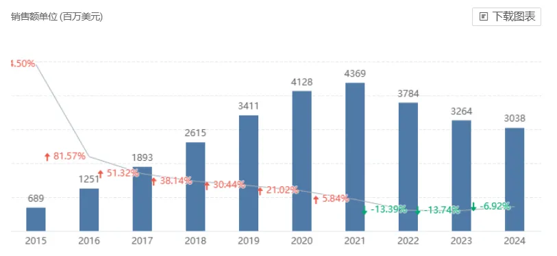 自上市以来,伊布替尼累计为强生贡献了 286.42 亿美元的收入。不过,随着专利到期,伊布替尼的销售额从 2022 年已开始出现下滑,24 年的销售额为 30.38 亿美元,同比下滑 6.9%。