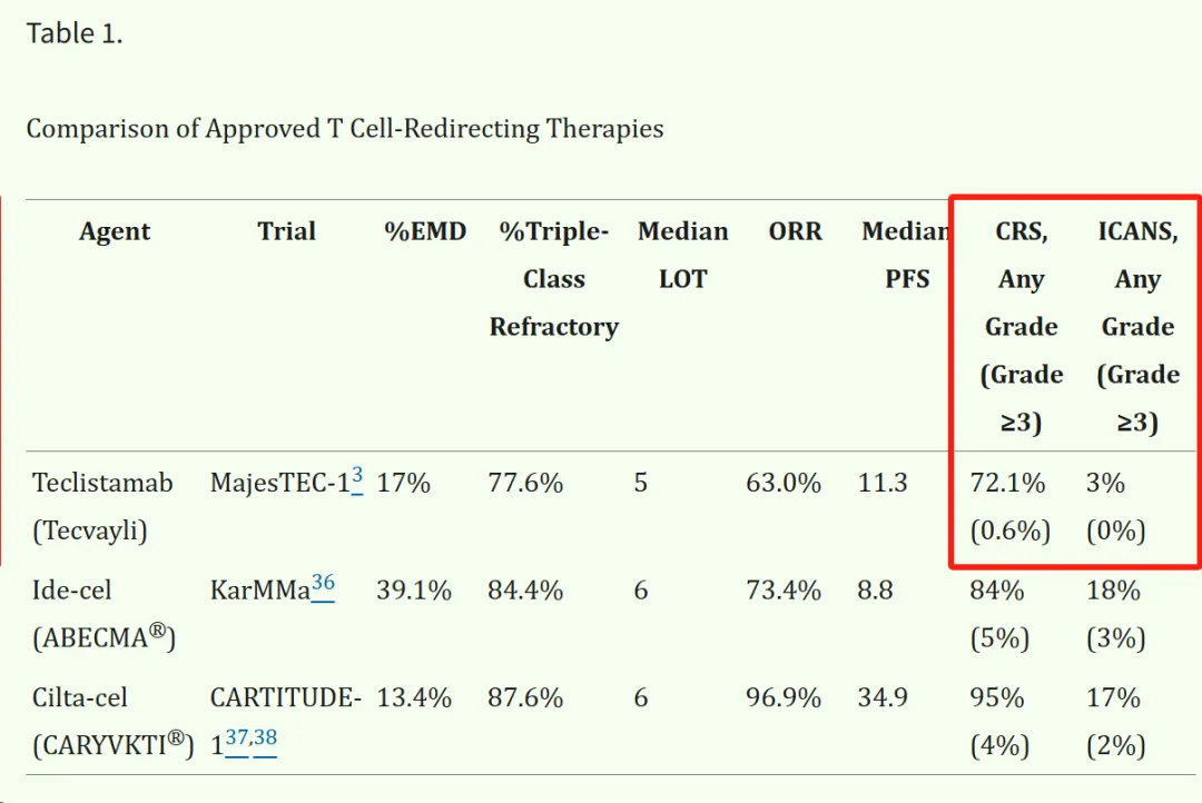 当然,原本就定向肿瘤适应症的T细胞衔接器管线出现这样的问题也很正常,关键在于后续迭代分子或者剂量降低后的疗效和安全性能否兼顾,Teclistamab暂时没有给出示范。