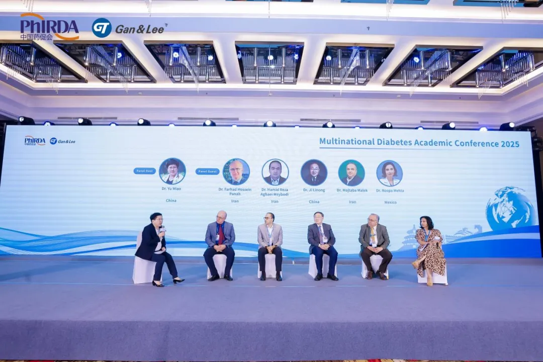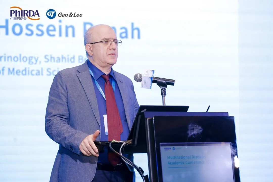 在专题2讨论环节中,北京协和医院的于淼教授担任主持,与纪立农教授、Farhad Hossein Panah教授、Hamid Reza Aghaei Meybodi教授、Mojtaba Malek教授以及Roopa Mehta博士围绕GLP-1 RA的临床应用经验、器官保护作用及其在跨疾病应用前景进行了深入讨论。