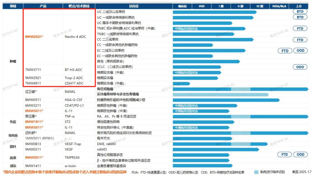 另外,胃肠道肿瘤创新靶点CDH17的ADC管线7MW4911中美双报IND也在路上,亦存在较强的未来海外授权预期。
