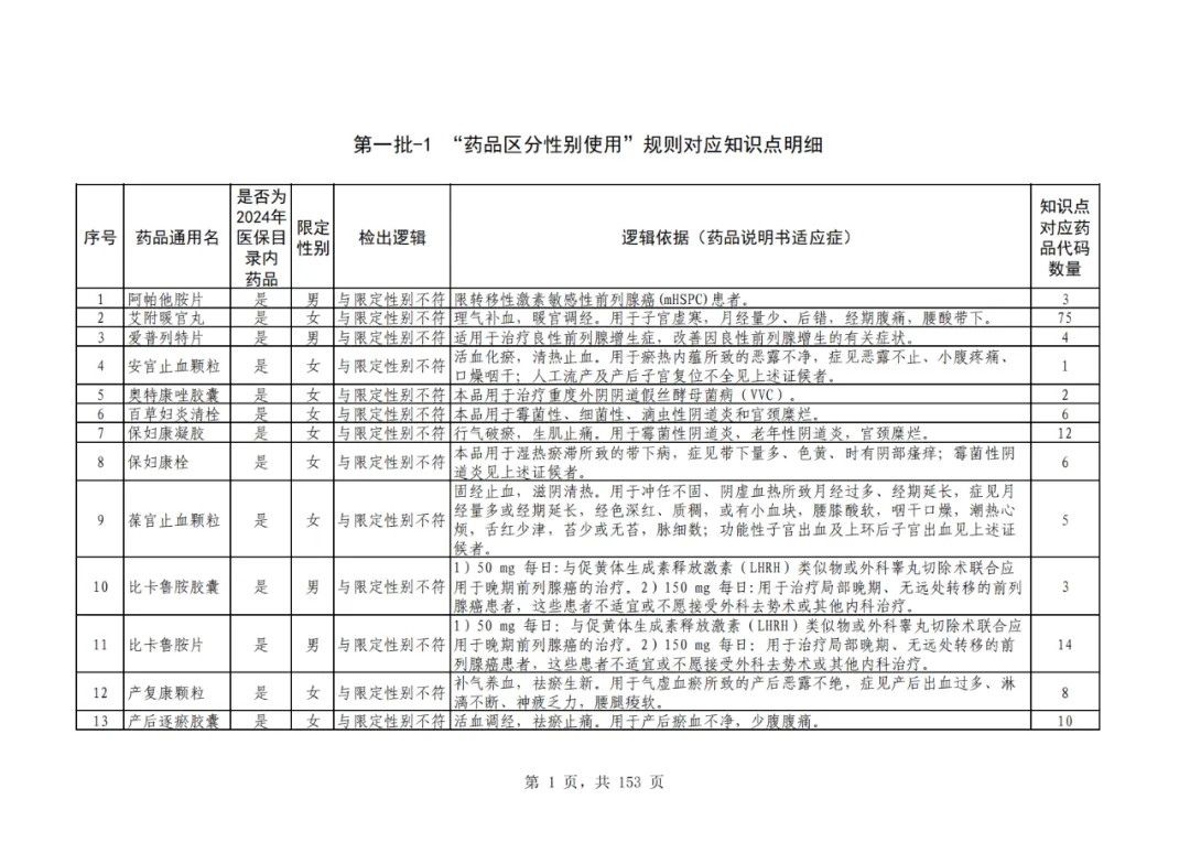 国家医保局在目录的“说明”部分明确,“药品区分性别使用”“药品儿童专用”均属于药品合理使用类规则,目录内药品纳入医保智能监管子系统开展智能审核和监管,目录外药品供医疗机构作为合理用药的参考。