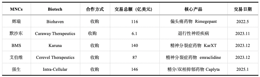 与此同时,MNC正通过高额并购与合作抢占CNS赛道制高点(表1)。
