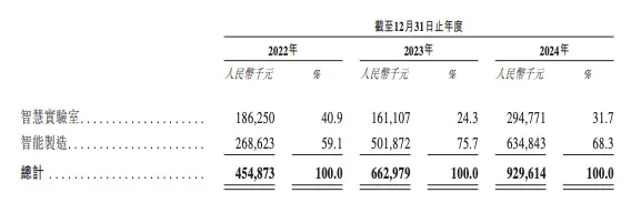 来自智能制造的收入由2022年的人民币268.6百万元增加86.8%至2023年的人民币501.9百万元,主要得益于主要客户向其平均购买金额增加及新获主要客户数量增加。来自智能制造的收入进一步增加26.5%至2024年的人民币634.8百万元,主要得益于年内主要客户数量持续增加。