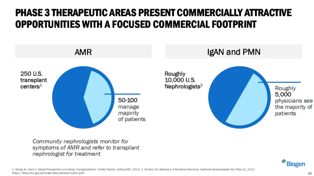 AMR治疗主要集中在全美250个移植中心,其中50-100个处理了大部分患者。IgAN和PMN的治疗则主要由约5000名核心肾病科医生负责。这种高度集中的特点,让Biogen可以用相对较小的销售团队实现精准覆盖。更重要的是,这些医生对新疗法的接受度很高。在缺乏有效治疗手段的情况下,只要有足够的临床证据支持,他们会很快采用新的治疗方案。
