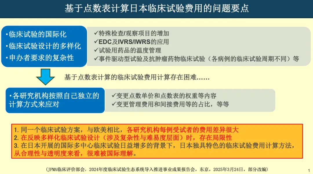 日本现行临床试验费用计算方法(点数表)的问题要点