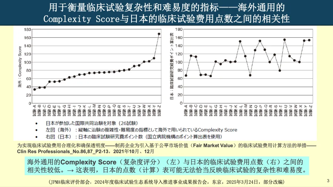 图3. 用于衡量临床试验复杂性和难易度的指标——海外通用的Complexity Score与日本的临床试验费用点数之间的相关性