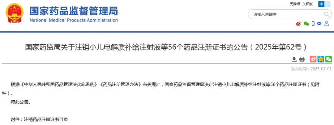 近日,国家药监局发布关于注销小儿电解质补给注射液等56个药品注册证书的公告。值得关注的是,在注销的药品名单中,外企产品达到30余个,占比过半,包括辉瑞、诺华、葛兰素史克(GSK)、BI(勃林格殷格翰)等知名药企旗下的部分原研药品。