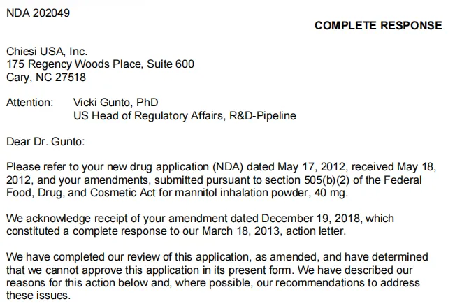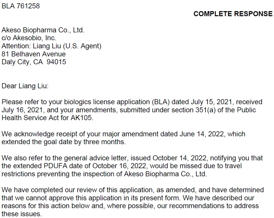 以下为此次FDA公开的CRL文件及部分信件截图: