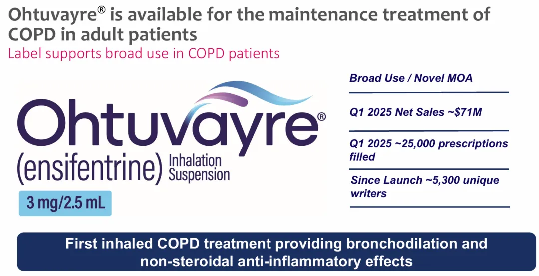 Pharma反映了我们为患者提供创新治疗的承诺,以及我们执行以科学为导向、以价值为导向的业务发展战略的能力。Ohtuvayre补充并扩展了我们的心肺疾病治疗产品线和产品组合,同时为股东带来了近期和长期的增长和价值。这种新颖的一流治疗方法基于其独特的支气管扩张和非甾体抗炎作用的组合,解决了慢性阻塞性肺病患者持续症状的重要未满足需求。我们期待着欢迎才华横溢的Verona