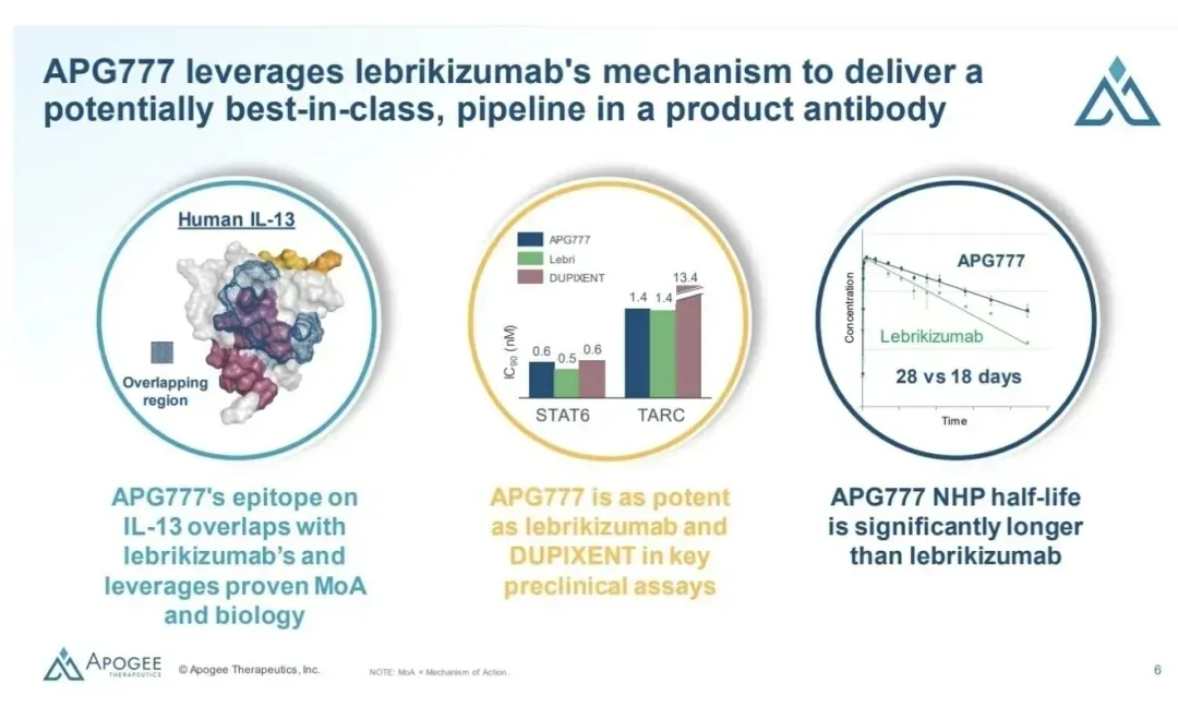 APG777相比礼来/Almirall公司的IL-13抗体Lebrikizumab以及赛诺菲的Dupilumab也毫不逊色。