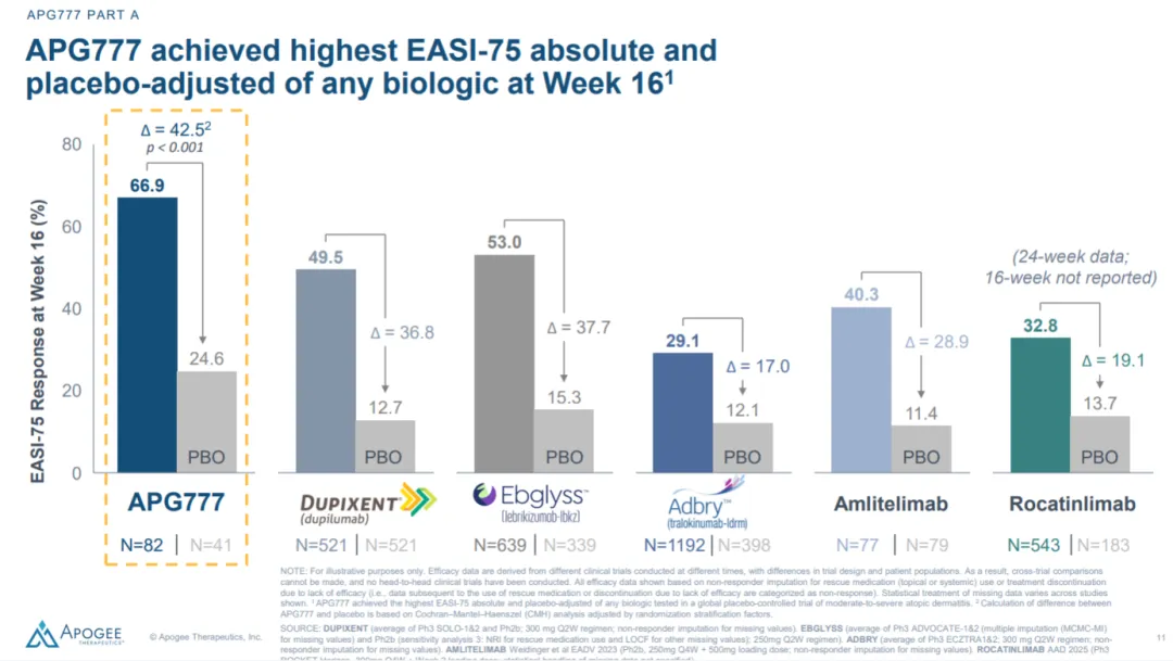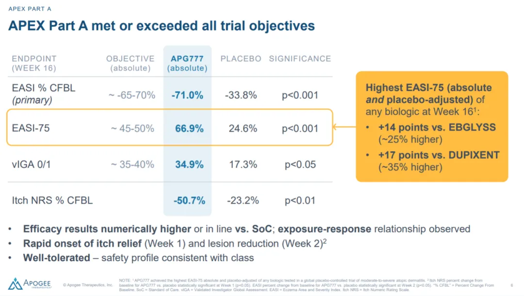 Apogee Therapeutics 公司公布的数据,APG777 在 Phase 2 APEX 试验 Part A