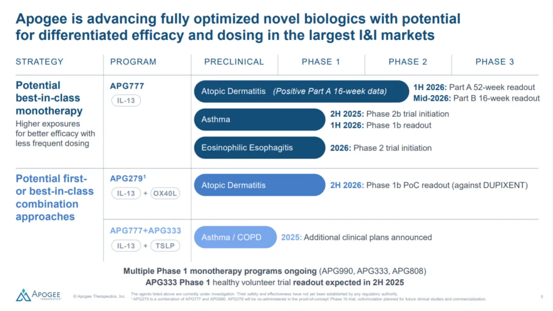 随着 Phase 2 APEX 试验的持续推进,Apogee Therapeutics 公司将继续收集更多关于 APG777