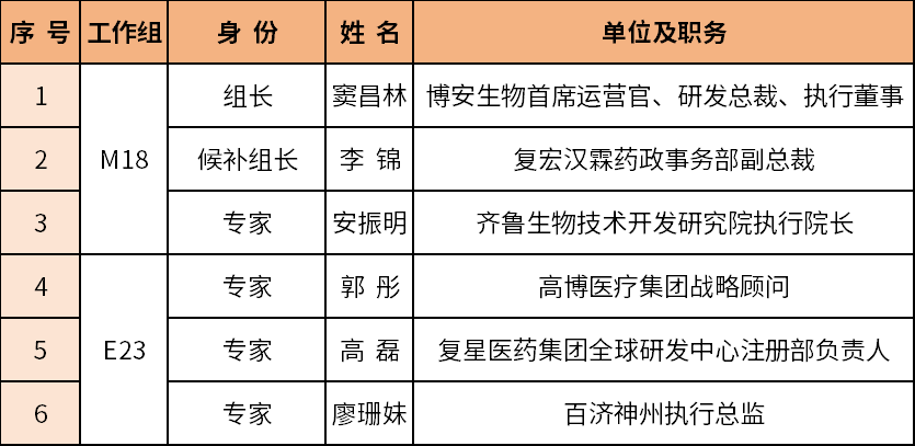 IFPMA ICH 新议题工作组六位专家名单如下: