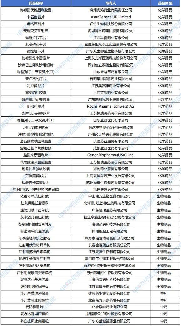 此外,还有27个以5.1类申请的进口原研药品和3个地产化品种。