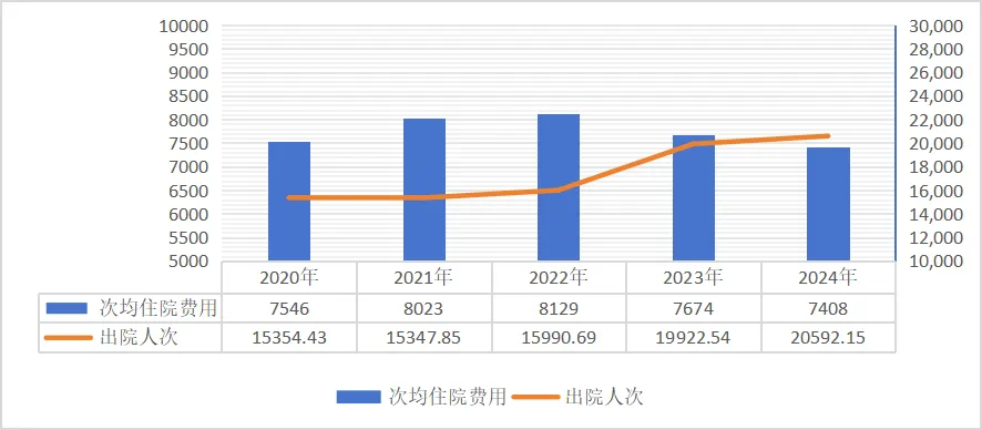 2020-2024年居民医保次均住院费用和出院人次