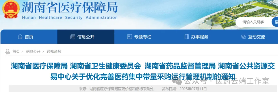 7月11日,湖南省医保局、省卫健委、省药监局、省公共资源交易中心发出《关于优化完善医药集中带量采购运行管理机制的通知》(湘医保发〔2025〕38号),完善医药集采的运行管理机制。