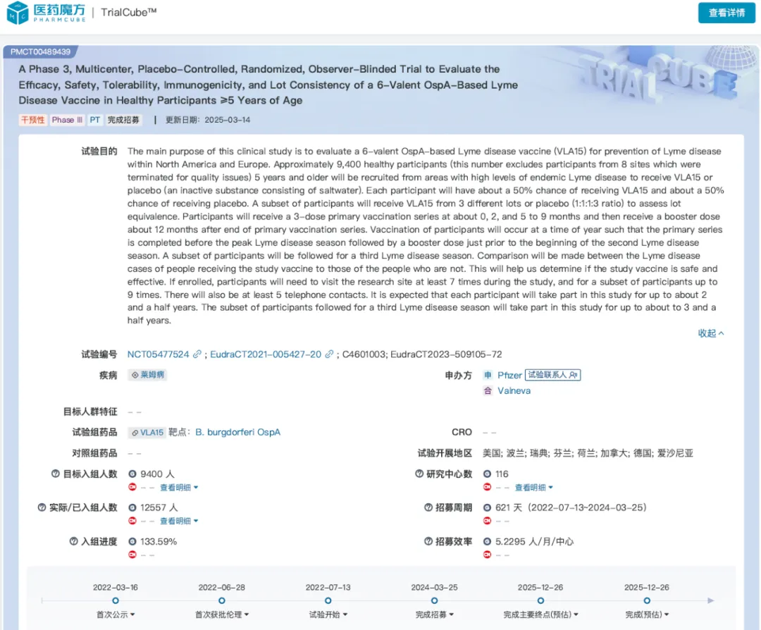 Valneva于2020年开始与辉瑞合作,并在两年后将VLA15推进到III期阶段。但其进程曾遇波折:因研究中心违规剔除近半初始受试者,两家公司将预期的上市申请时间从2025年推迟至2026年,目前试验入组人数已翻倍(原计划6000人)。