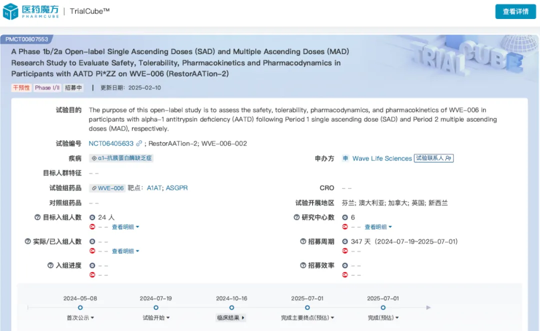 去年,该疗法的初步数据显示:两名AATD患者单剂量治疗后,成功产生身体缺失的蛋白质,效果在几天内显现且持续约两个月,无严重副作用。这一超预期表现推动Wave及同类公司股价飙升。而今年三季度,Wave将首次公布多剂量治疗的患者数据,结果将对整个RNA编辑领域产生影响。