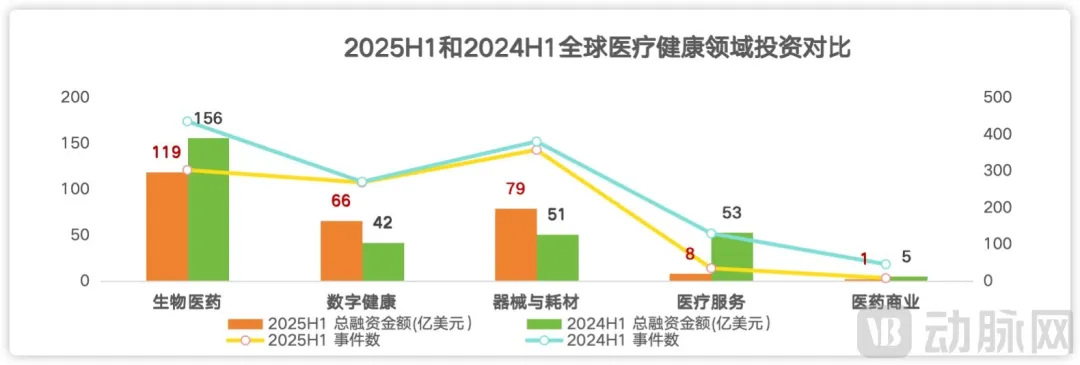2025年H1,全球医疗健康投融资市场仍处于寒冬,但细分领域已出现不同发展态势。