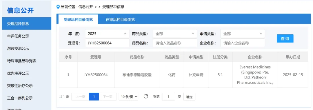 据报道,今年2月,云顶新耀虽已向国家药监局药品审评中心提交扩大产能申请,但技术审评流程复杂,目前仍在等待审批通过,何时恢复稳定供货暂无法确定。我们查阅CDE网站,确实看到,关于布地奈德肠溶胶囊(受理号:JYHB2500064)在今年2月的补充申请,注册分类5.1(境外上市的原研药品和改良型药品)。