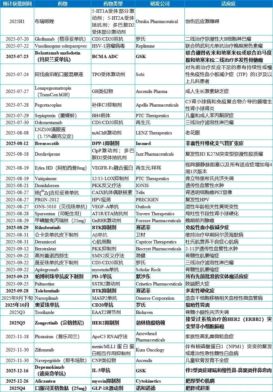今年下半年FDA待审批新药/新适应症上市申请