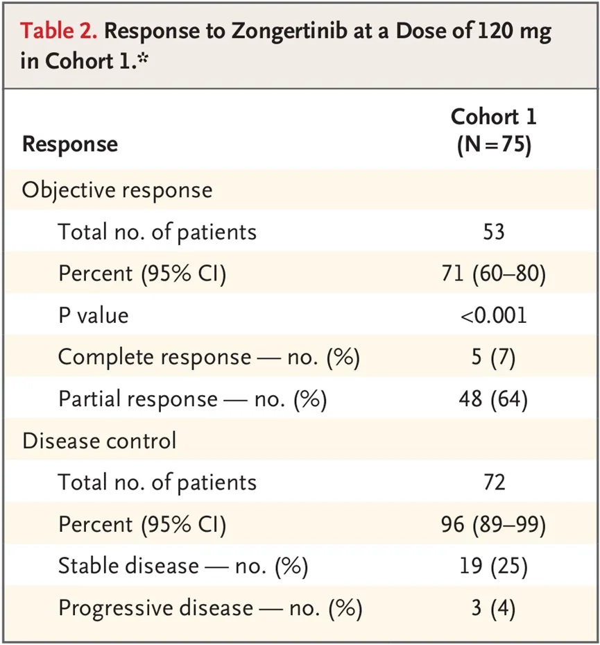 Zongertinib的上市申请是基于Ib期Beamion LUNG-1研究队列1的积极数据。该队列包含75例既往接受过治疗的HER突变非小细胞肺癌(NSCLC)患者。结果显示,患者经Zongertinib(120mg,每日1次)治疗后,71%实现了确认的客观缓解,中位缓解持续时间(DOR)为14.1个月,中位PFS为12.4个月。安全性方面,13例患者发生3级及以上治疗相关不良事件(TRAE)。没有患者出现药物相关间质性肺病。