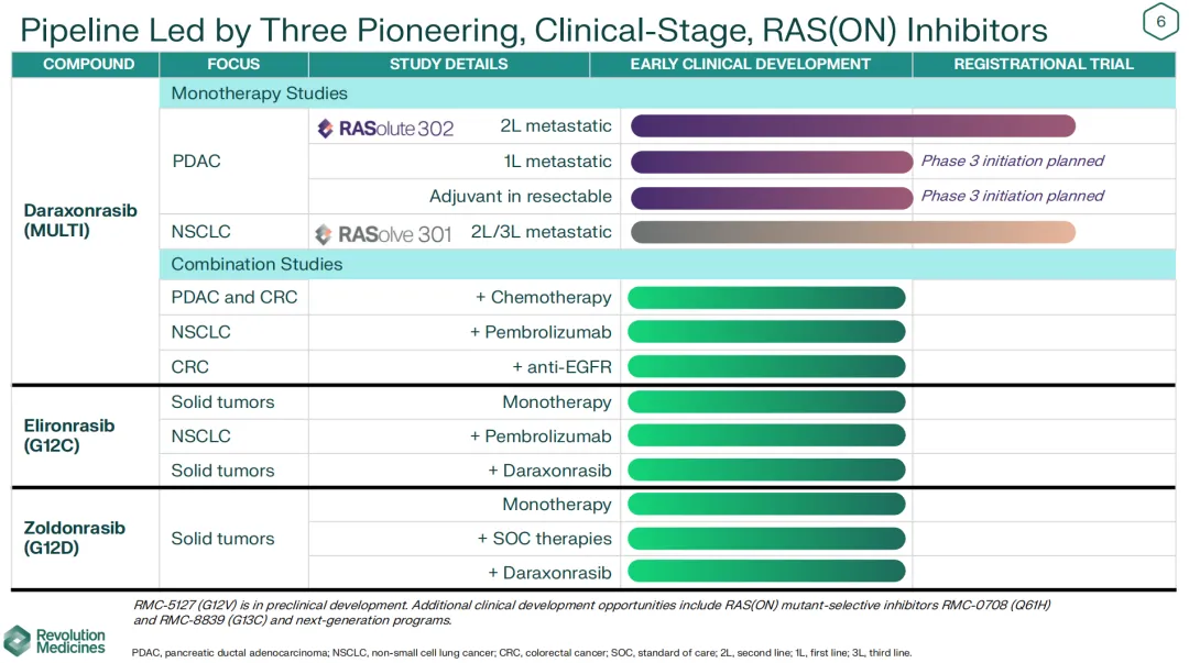 目前RVMD的Daraxonrasib正在进行两项注册性三期临床试验,分别针对RAS突变驱动的二线转移性PDAC(数据预计2026年公布)和二线/三线转移性非小细胞肺癌患者。高盛预计Daraxonrasib在PDAC(辅助治疗、一线、二线转移性)和非小细胞肺癌(非G12C;一线和二线)领域的全球销售峰值可达121亿美元。