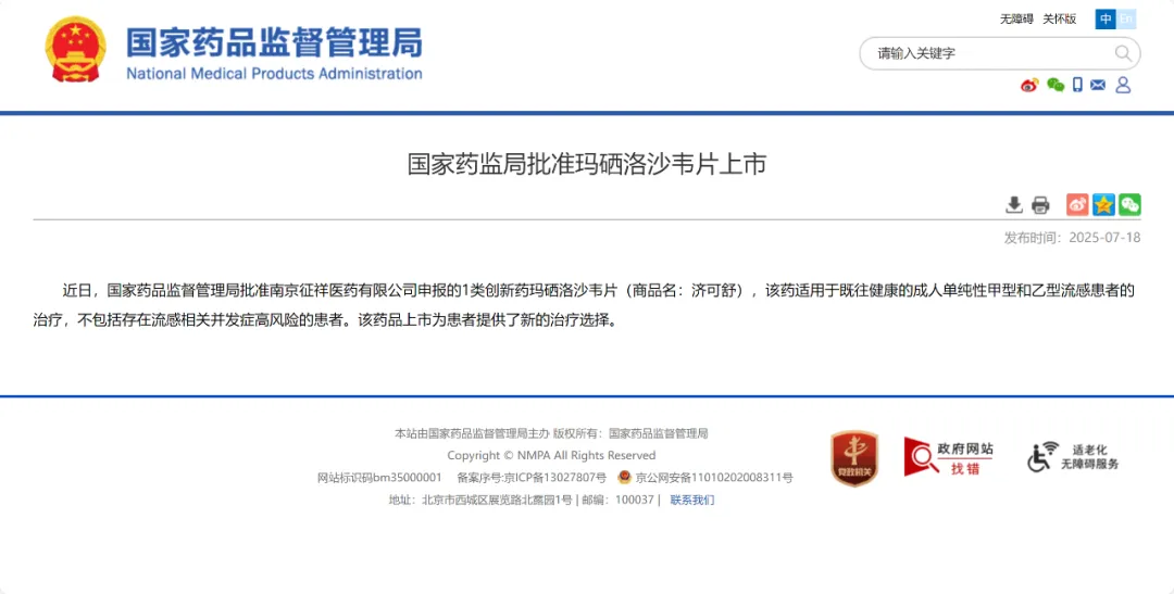 2025年7月18日,征祥医药宣布自主研发的新型PA抑制剂抗流感新药济可舒(玛硒洛沙韦)正式获得中国国家药品监督管理局(NMPA)批准上市,用于治疗成人单纯性流感。