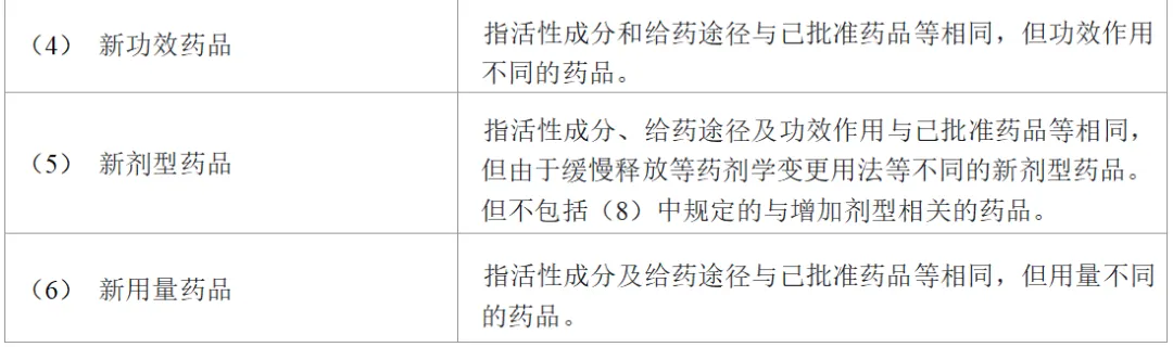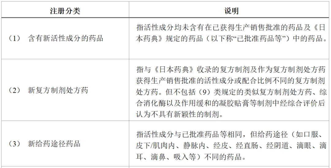 •注册分类包括含新活性成分的药品、新复方制剂处方药、新给药途径药品等十类,还涉及微小变更。