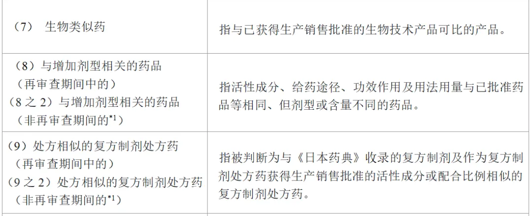 *1:“非再审查期间的”是指原研药品的再审查期限已结束,即可以申请注册仿制药及生物类似药。