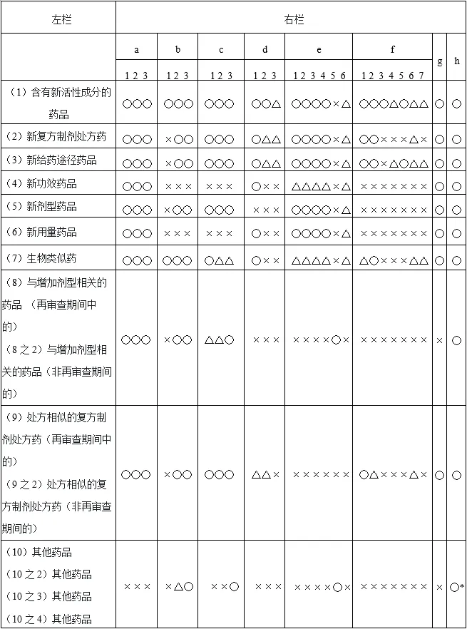 注1)右栏的符号及编号表示表2规定的资料的符号及编号,原则上,○表示需要附带,×表示不需要附带,△表示需根据各个药品的情况判断是否附带。