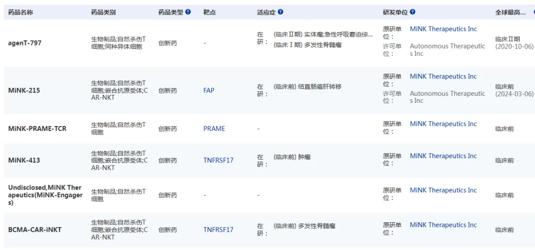 图3 MiNK Therapeutics在研品种