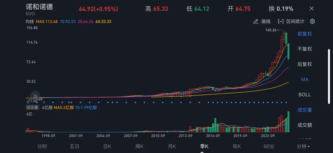 图|诺和诺德股价走势图