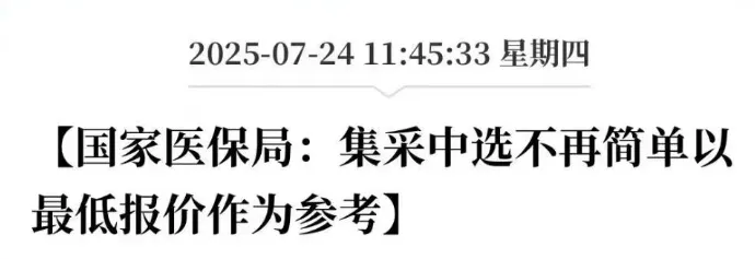 群里老哥一问原因,说是医保局在午饭前泡了个声明,说不再“唯低价是取”。