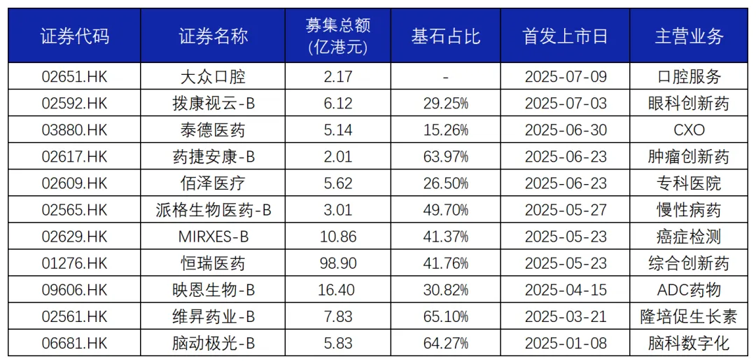 但今年以来,随着资本市场回暖,这一担忧正在消散。二级市场融资渠道已显著畅通:截至目前,已有10家药企完成IPO,募资总额逼近200亿港元。