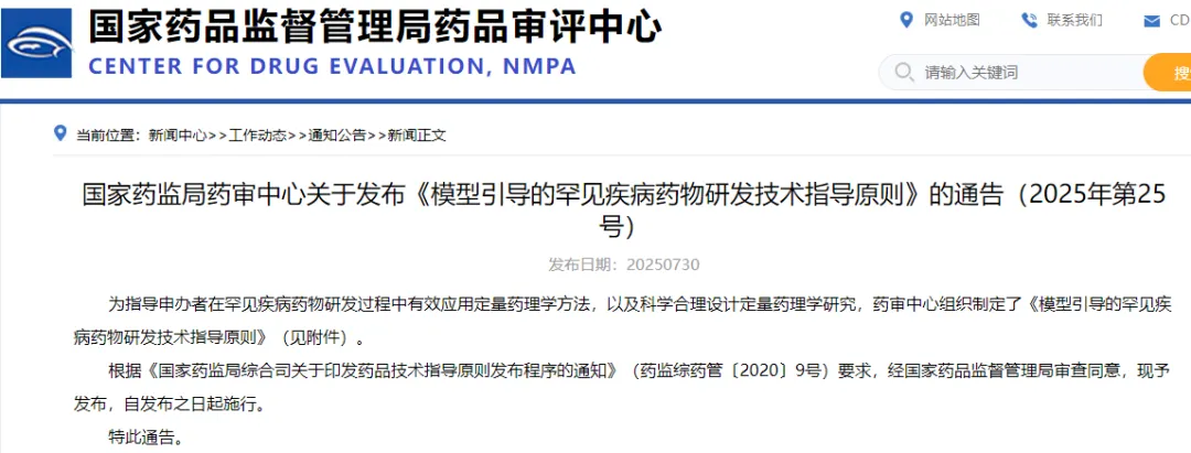 《模型引导的罕见疾病药物研发技术指导原则》PDF原文下载: