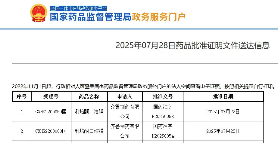 齐鲁制药在口溶膜领域的布局已深耕多年。自2013年开始研发口溶膜制剂,公司在这一领域已建立起显著优势。