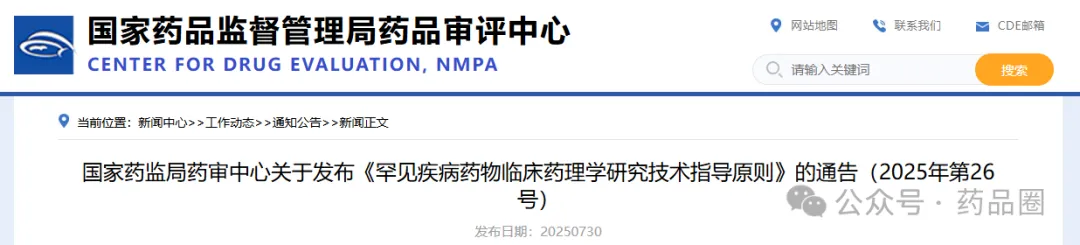 为指导罕见疾病药物研发过程中科学合理开展临床药理学研究,从而支持和合理加速罕见疾病药物上市,药审中心组织制定了《罕见疾病药物临床药理学研究技术指导原则》(见附件)。