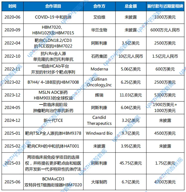 HBM7020:是一款BCMAxCD3双特异性抗体。该药应用HBICE技术,具备不对称结构,有效解决轻链错配挑战,通过具有低结合亲和力和沉默Fc的CD3单抗将细胞因子释放风险降至最低。此前,HBM7020曾获批开展针对癌种的临床试验,但2024年和铂医药调整策略,将适应症转向免疫性疾病领域,目前正在准备递交IND申请。