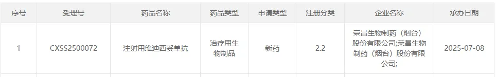 荣昌生物「维迪西妥单抗」