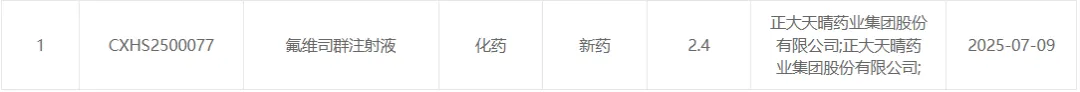7 月 9 日,正大天晴库莫西利胶囊和氟维司群注射液的联合疗法新适应症报上市,用于 HR+/HER2-的局部晚期或转移性乳腺癌患者的初始内分泌治疗。