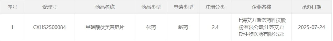 7 月 24 日,艾力斯伏美替尼第三项适应症上市申请获受理,用于既往经含铂化疗治疗时或治疗后出现疾病进展或不耐受含铂化疗,并且经检测确认存在 EGFR 20 外显子插入突变的局部晚期或转移性 NSCLC 成人患者的治疗。该申请已被 CDE 纳入优先审评。
