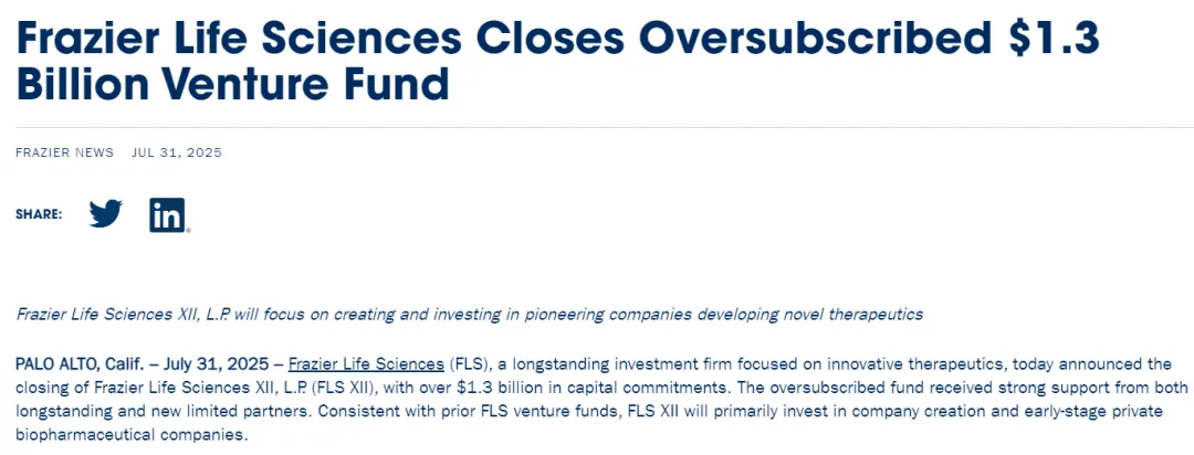 自2016年以来,Frazier Life Sciences已通过五个专用风险基金筹集了超过36亿美元,自2021年以来,还通过只做多的公共基金筹集了17亿美元。